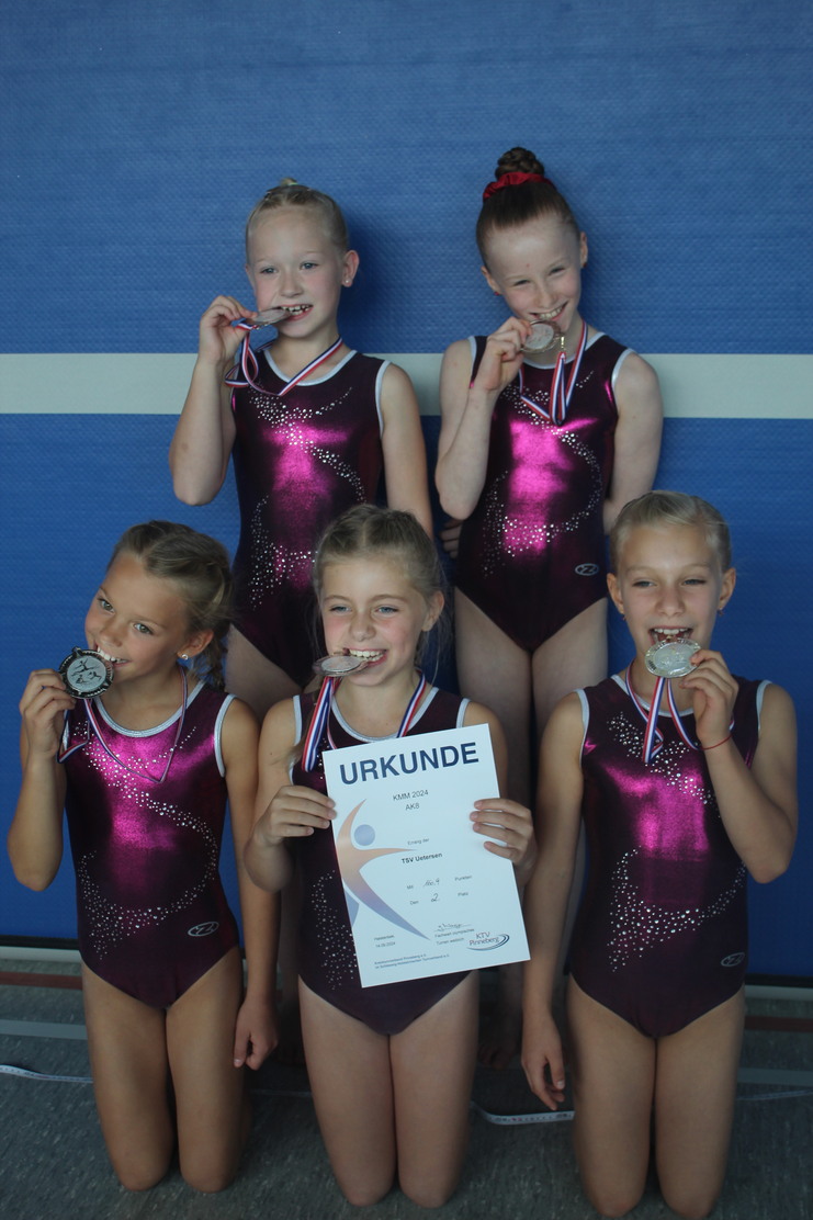 Am 28.09.2024 ging die Kür-Mannschaft des TSV Uetersen mit den Turnerinnen Luciana Abroszat, Lisa Ann Brinke, Darja Lajewski und Maja Reimann bei den Landesmannschaftsmeisterschaften in Wedel an den Start und belegte mit 123,95 Punkten den 1. Platz.